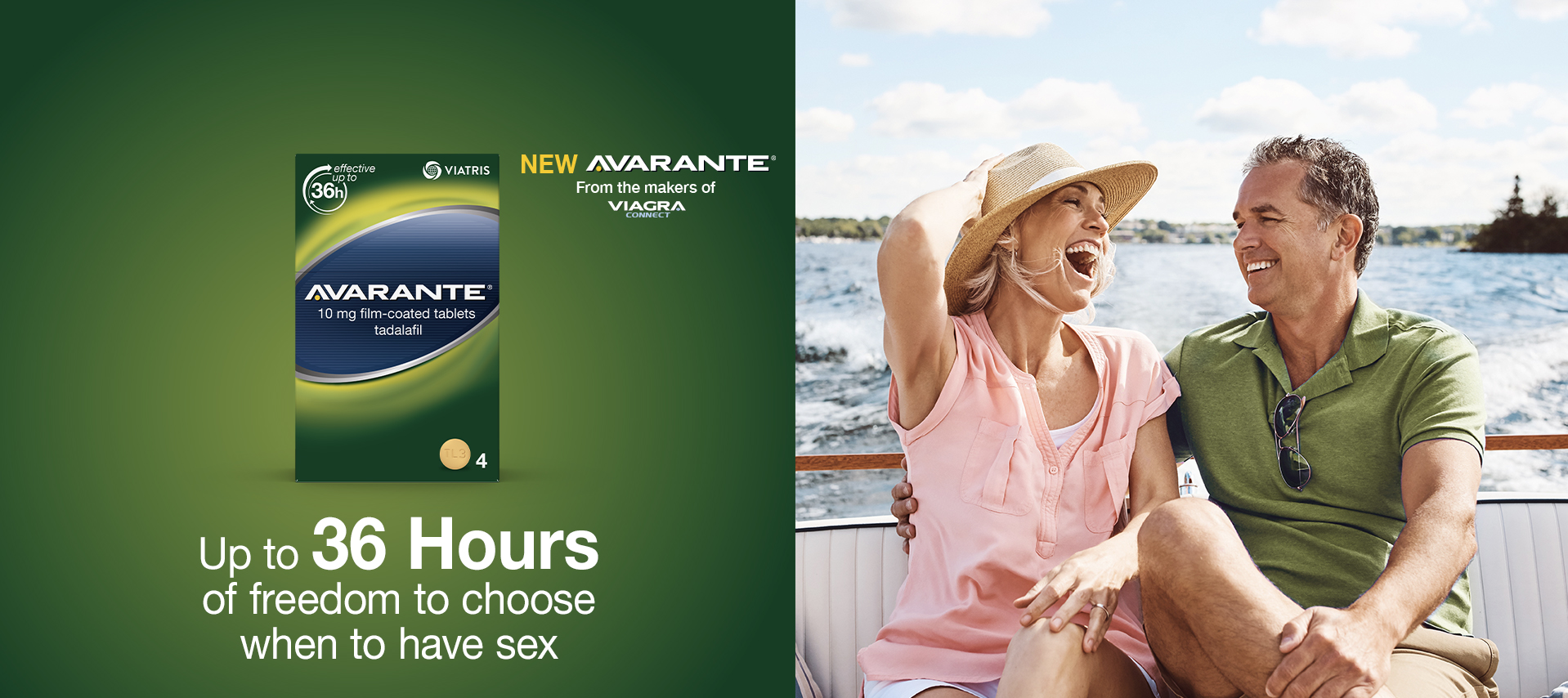 * Disclaimer: Tadalafil, including AVARANTE, is not intended for continuous daily use. If you feel that you need it twice weekly or more, talk to your doctor to discuss a more suitable option for you.